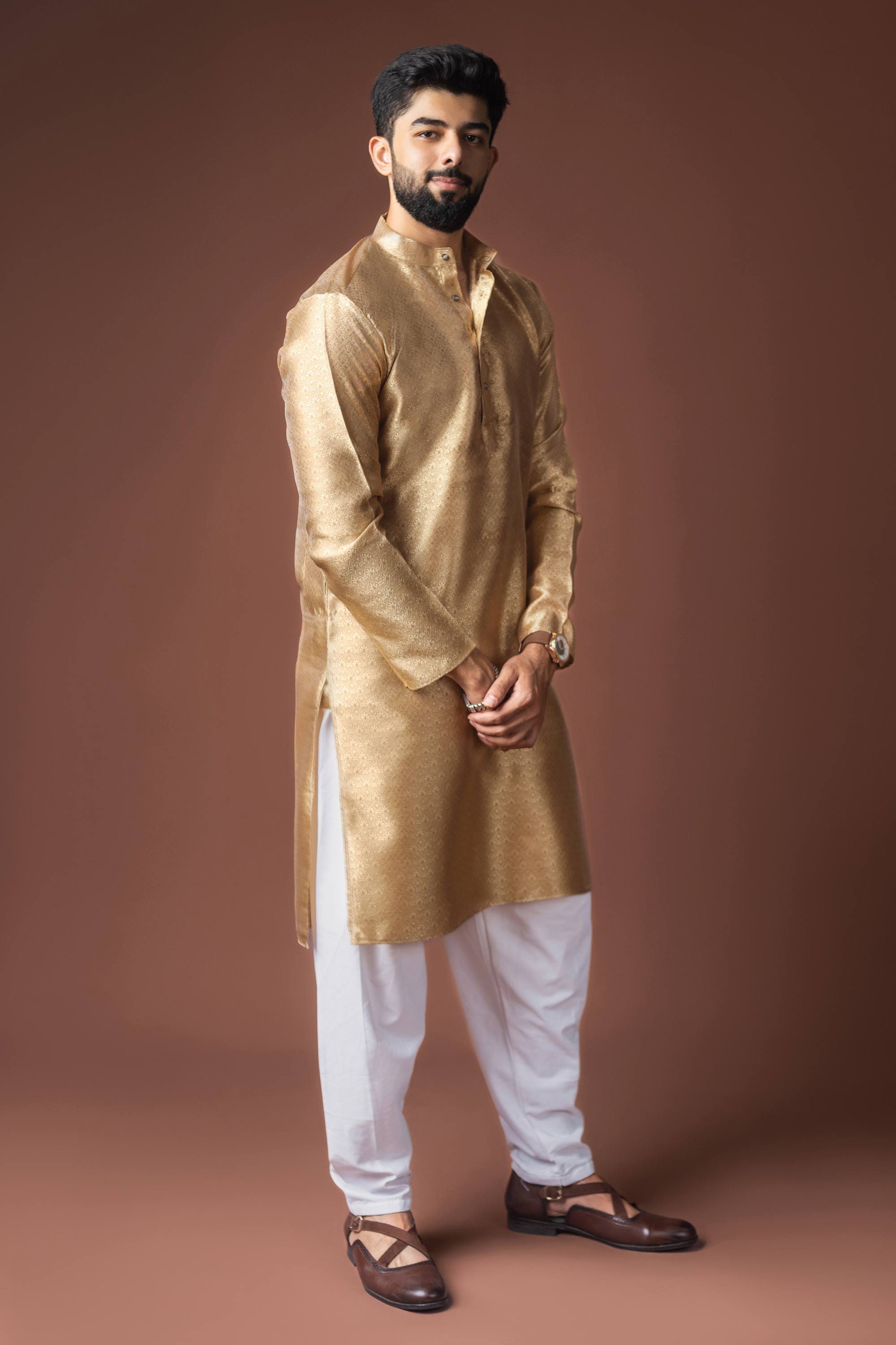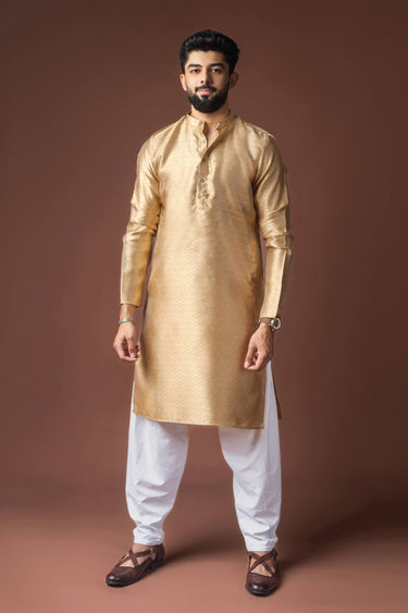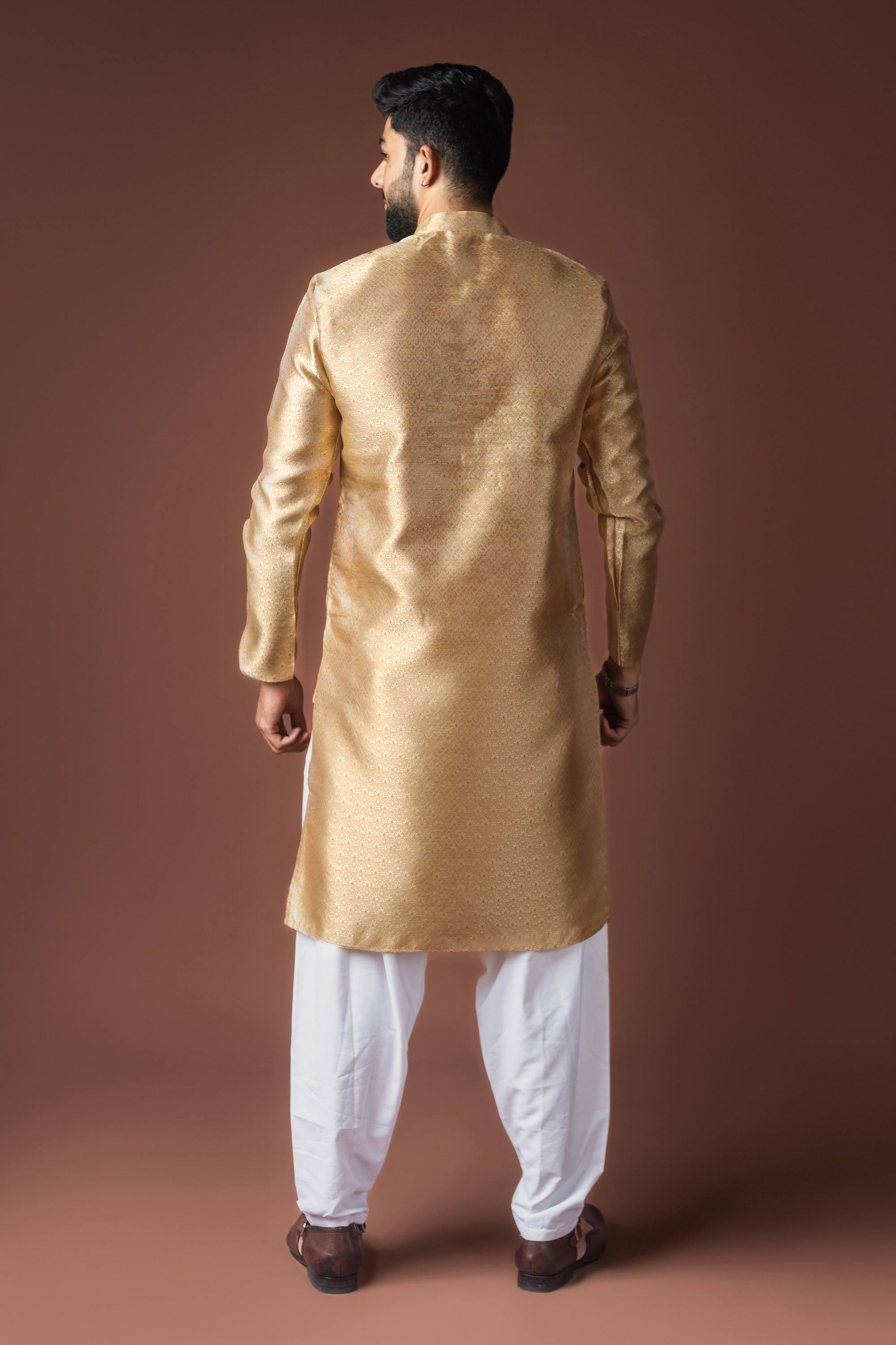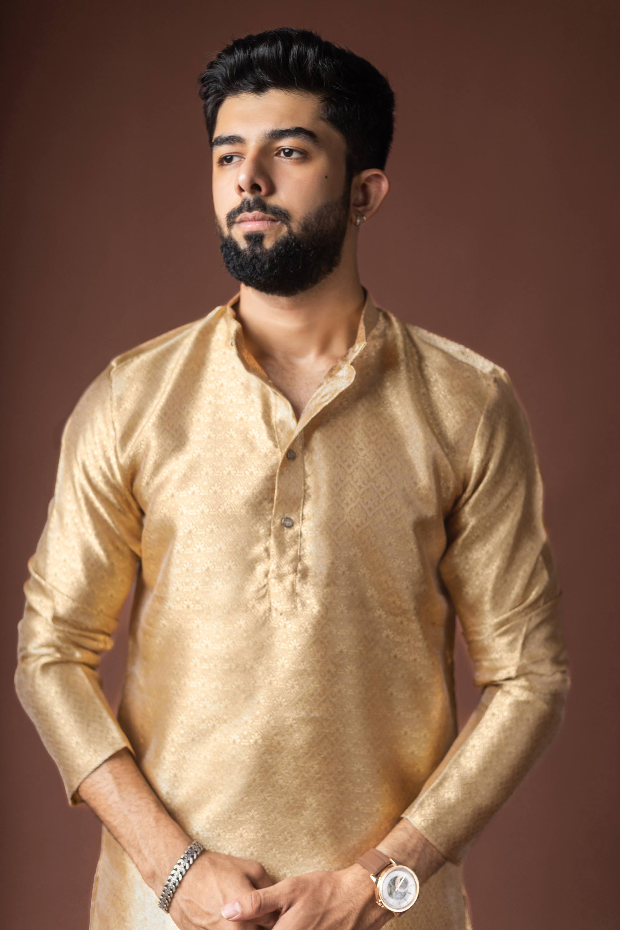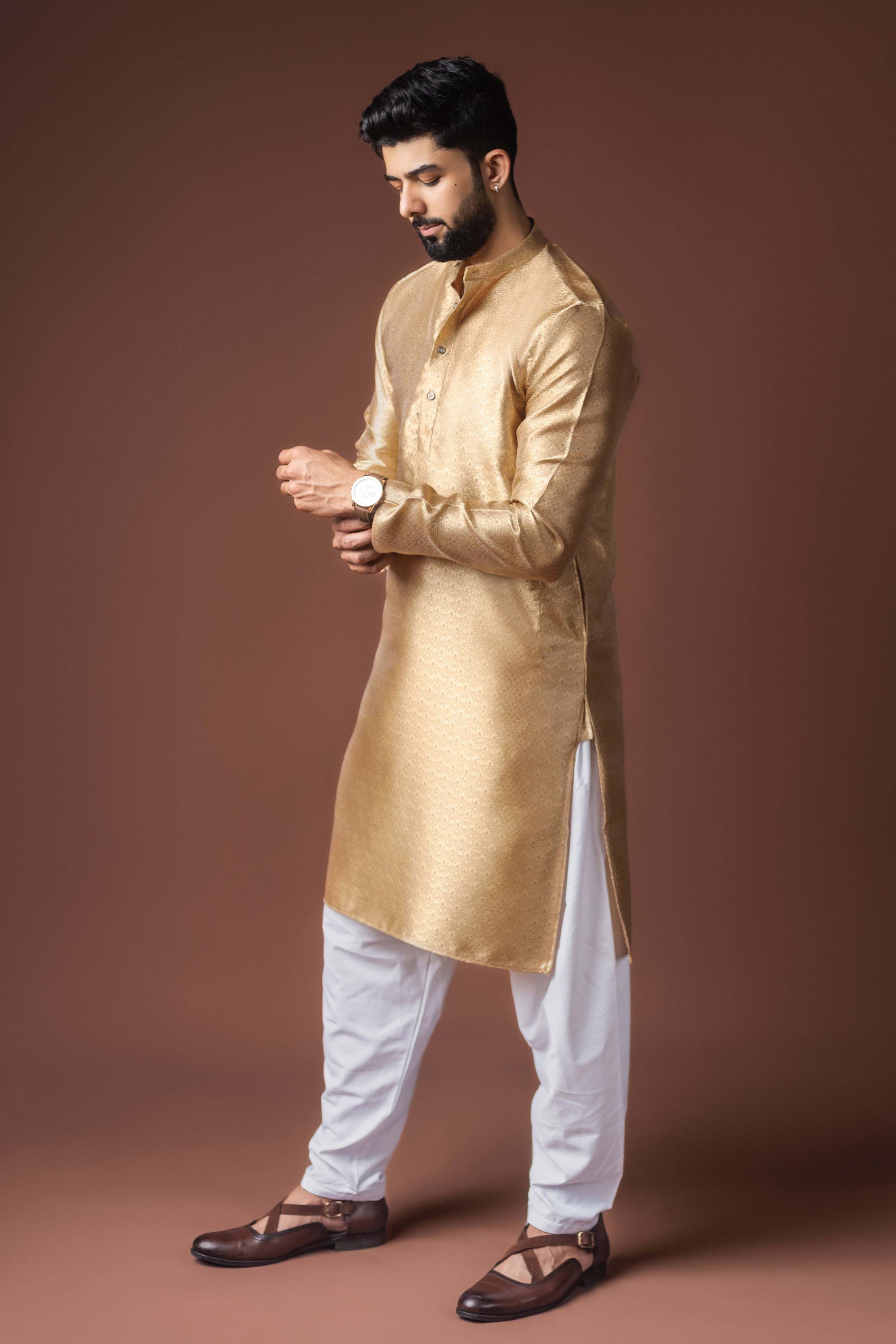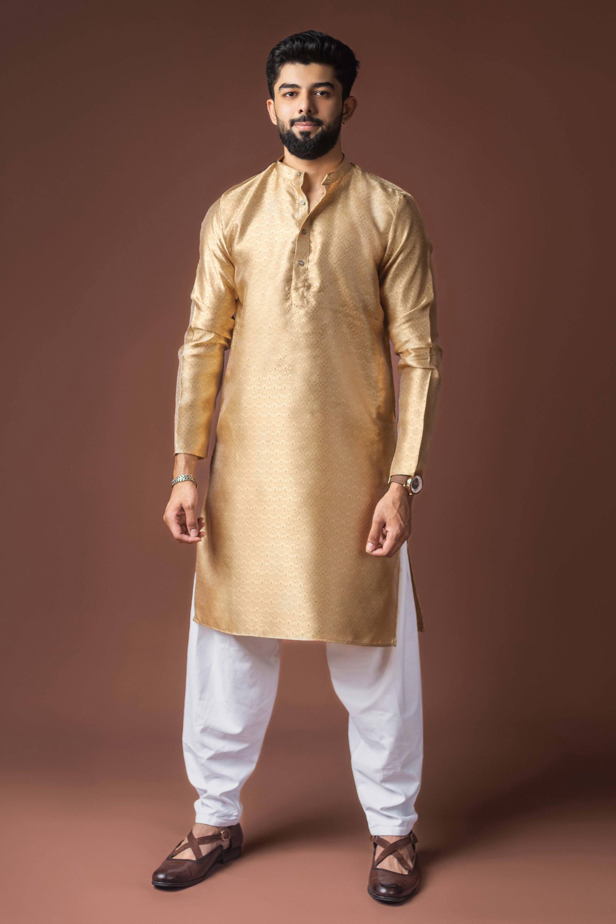 Jacquard Weaving Work Cream Wedding Wear Readymade Kurta For Men
