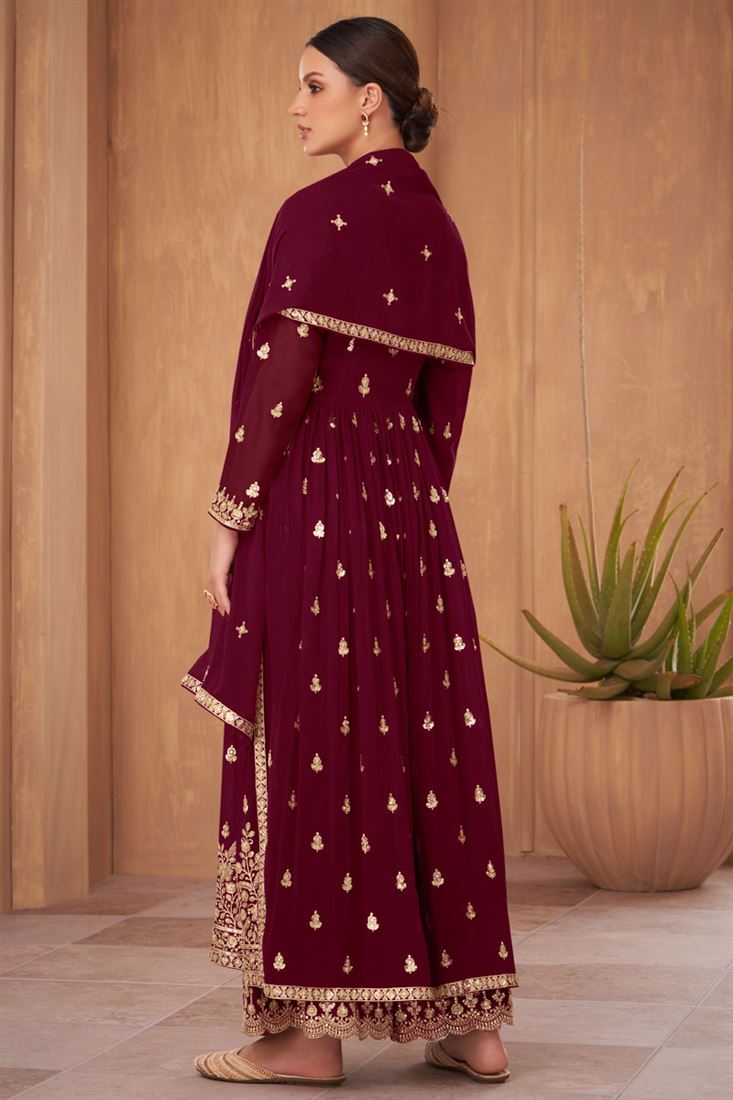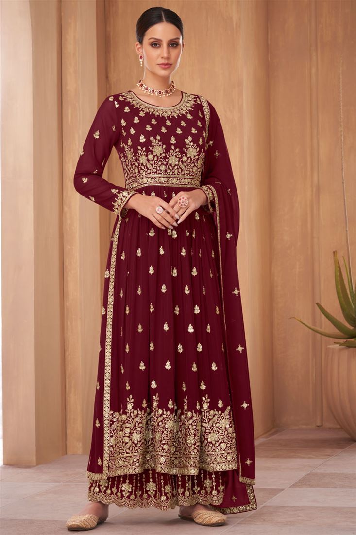 Larissa Bonesi Maroon Color Charismatic Sequins Designs Georgette Palazzo Suit