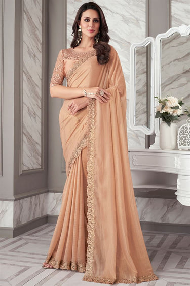 Larissa Bonesi Stunning Border Work Peach Color Chiffon Fabric Saree