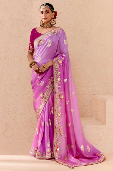 Lavender and Pink Color Exquisite Weaving Work Bember Silk Saree