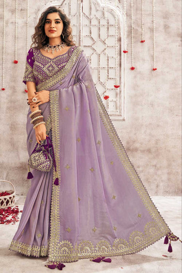 Lavender Color Border Work Organza Chic Saree
