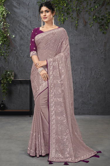 Lavender Color Chiffon Fabric Reception Wear Embroidered Saree