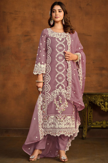 Lavender Color Organza Fabric Designer Embroidered Salwar Suit