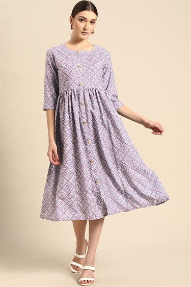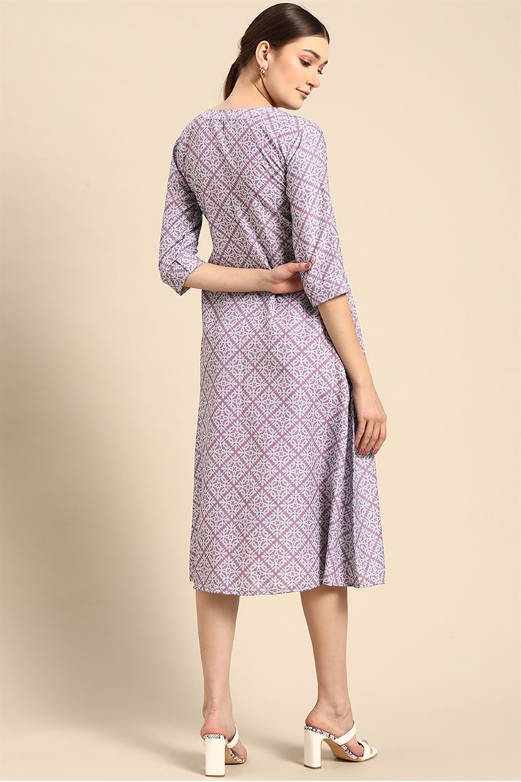 Lavender Color Sober Casual Wear Rayon Fabric Printed Kurti