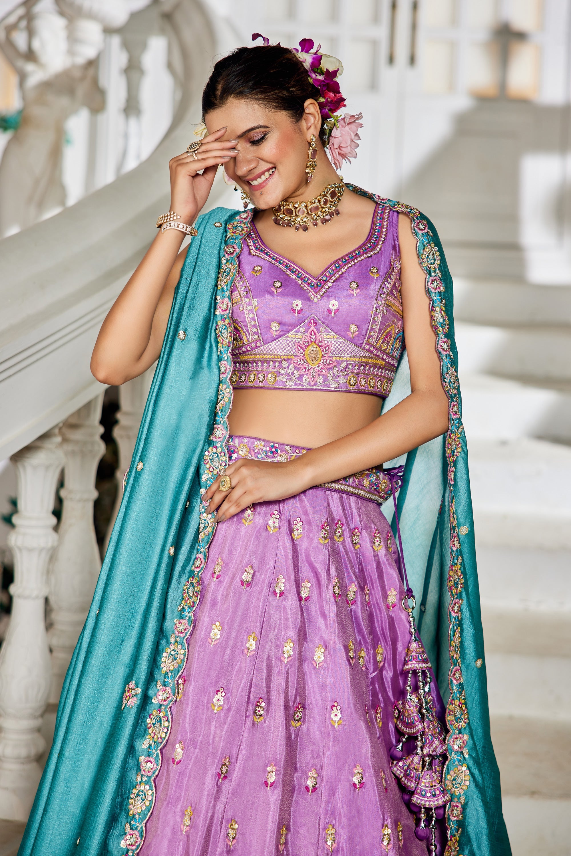 Lavender Pure Tissue Heavy Embroidered Bridal Lehenga Choli