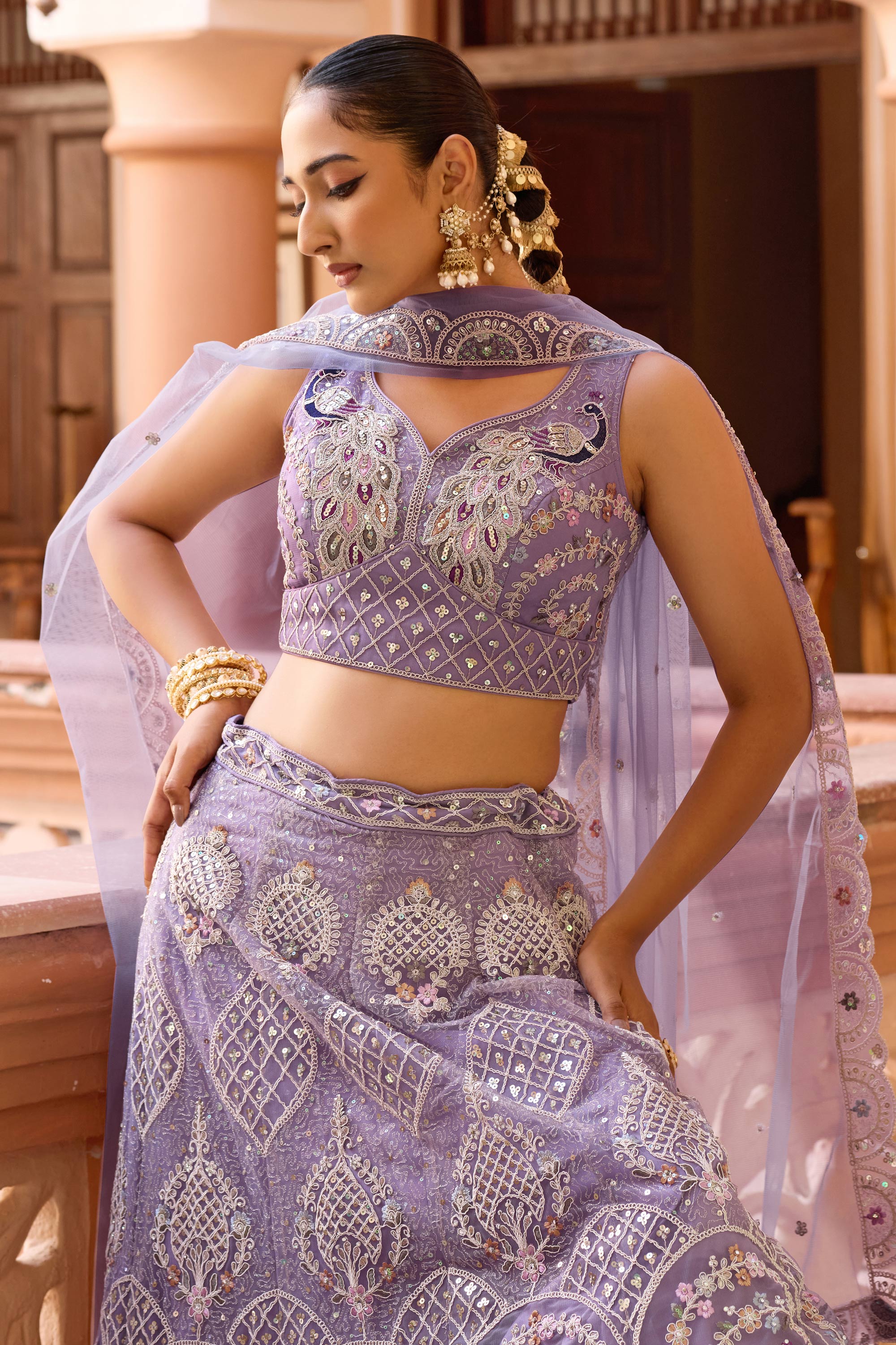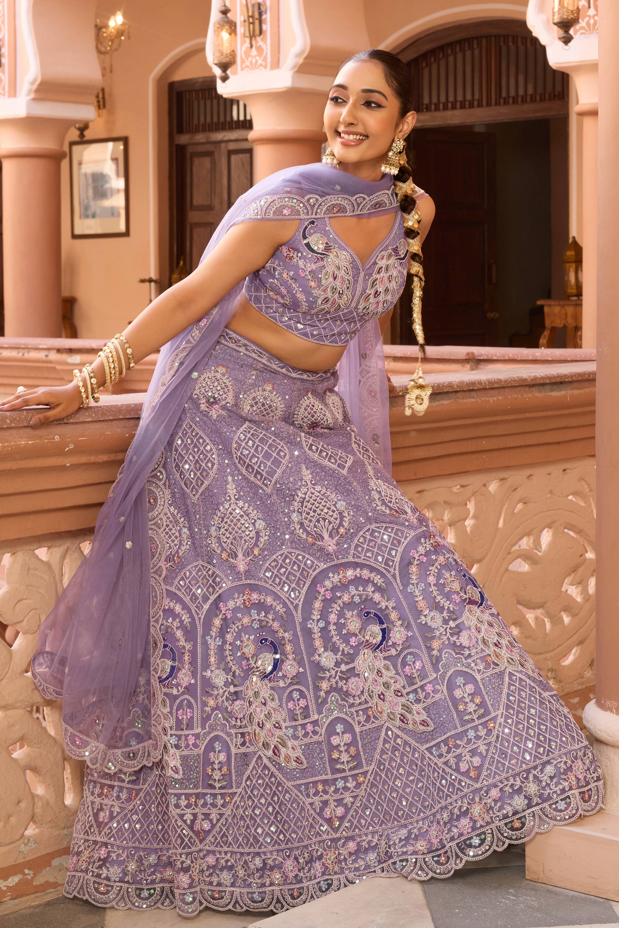 Lavender Wedding Wear Net Fabric Lehenga Choli With Dupatta