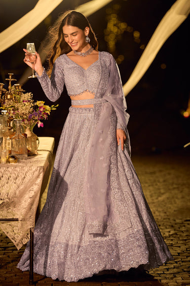 Lavender Wedding Wear Net Fabric Readymade Lehenga Choli
