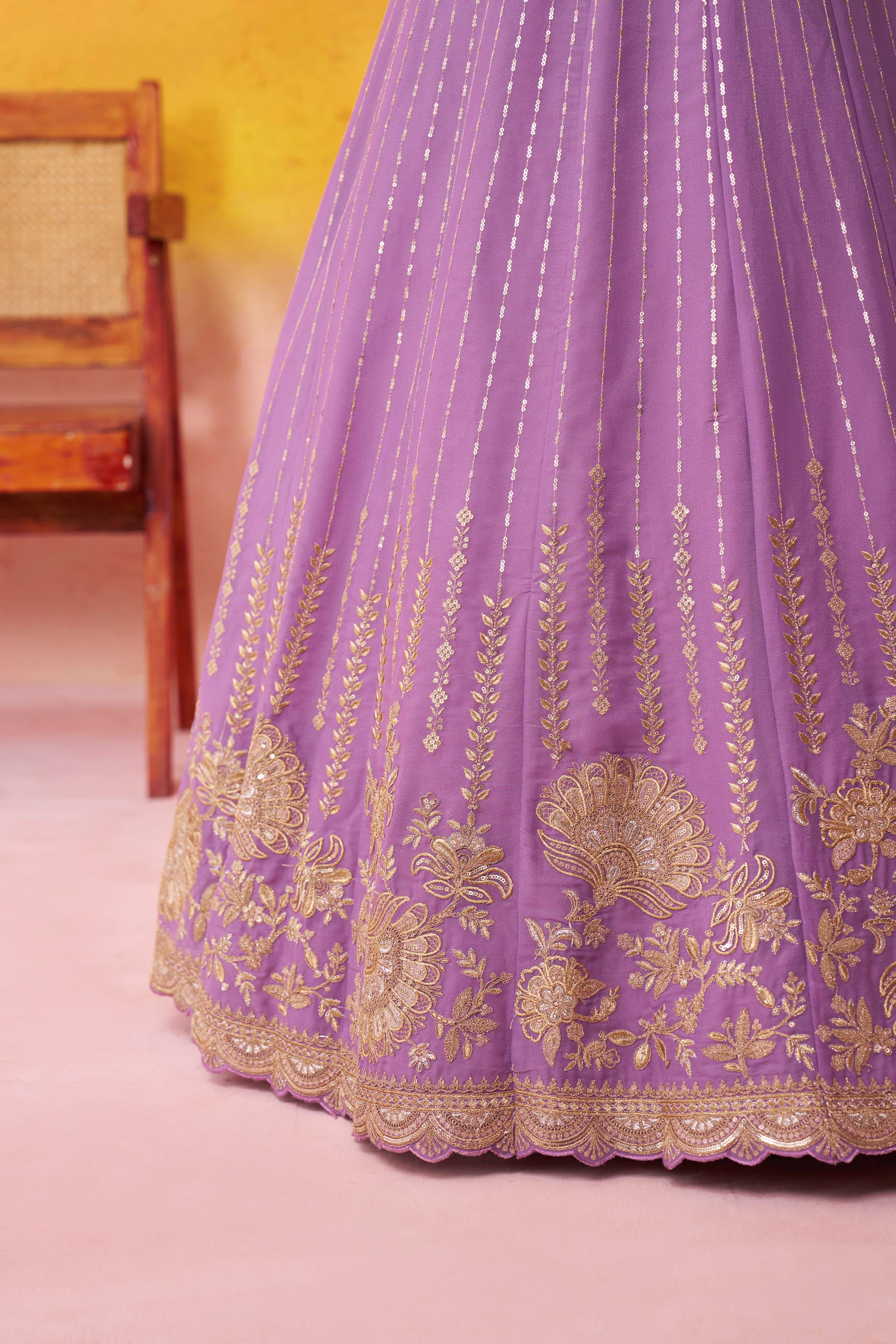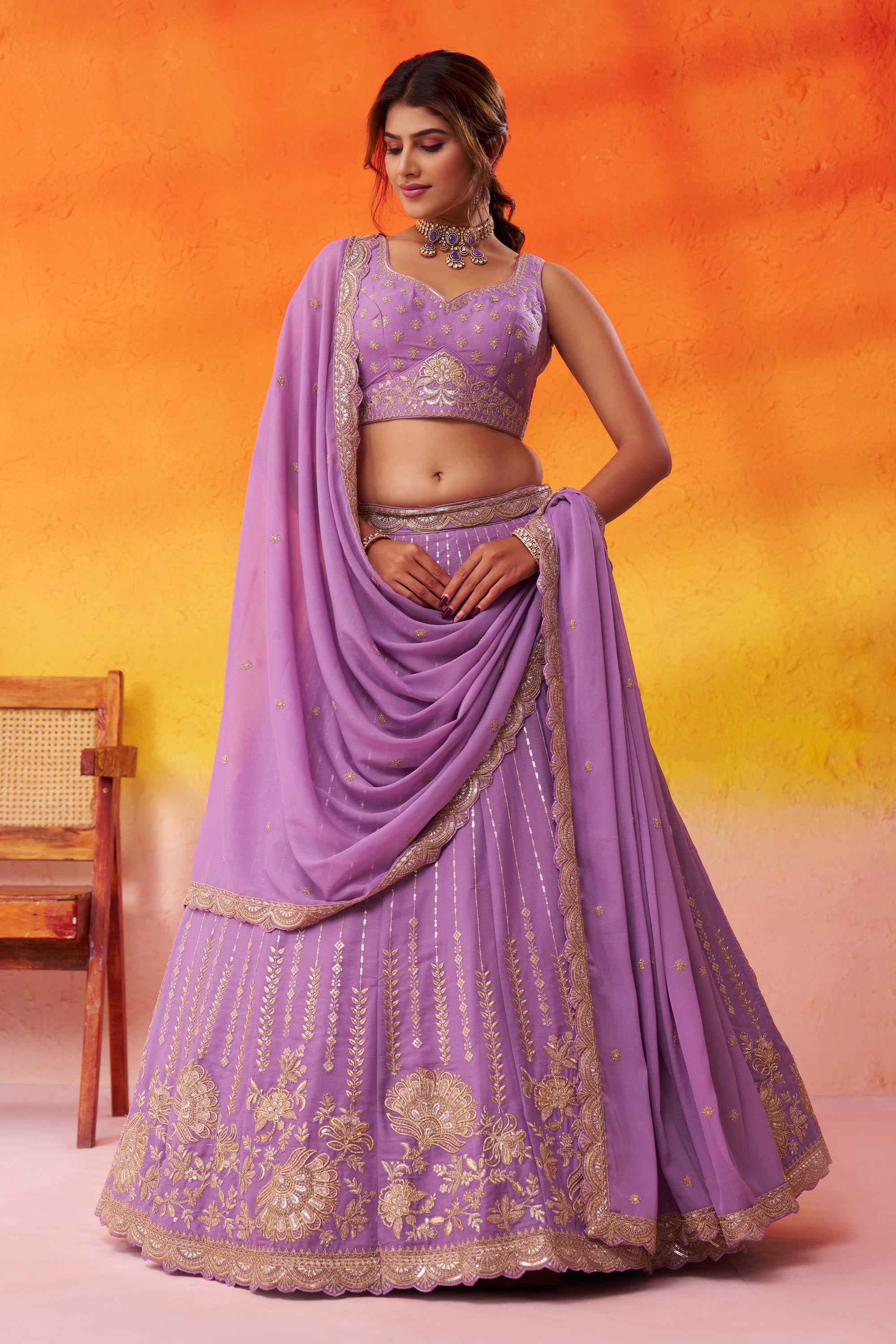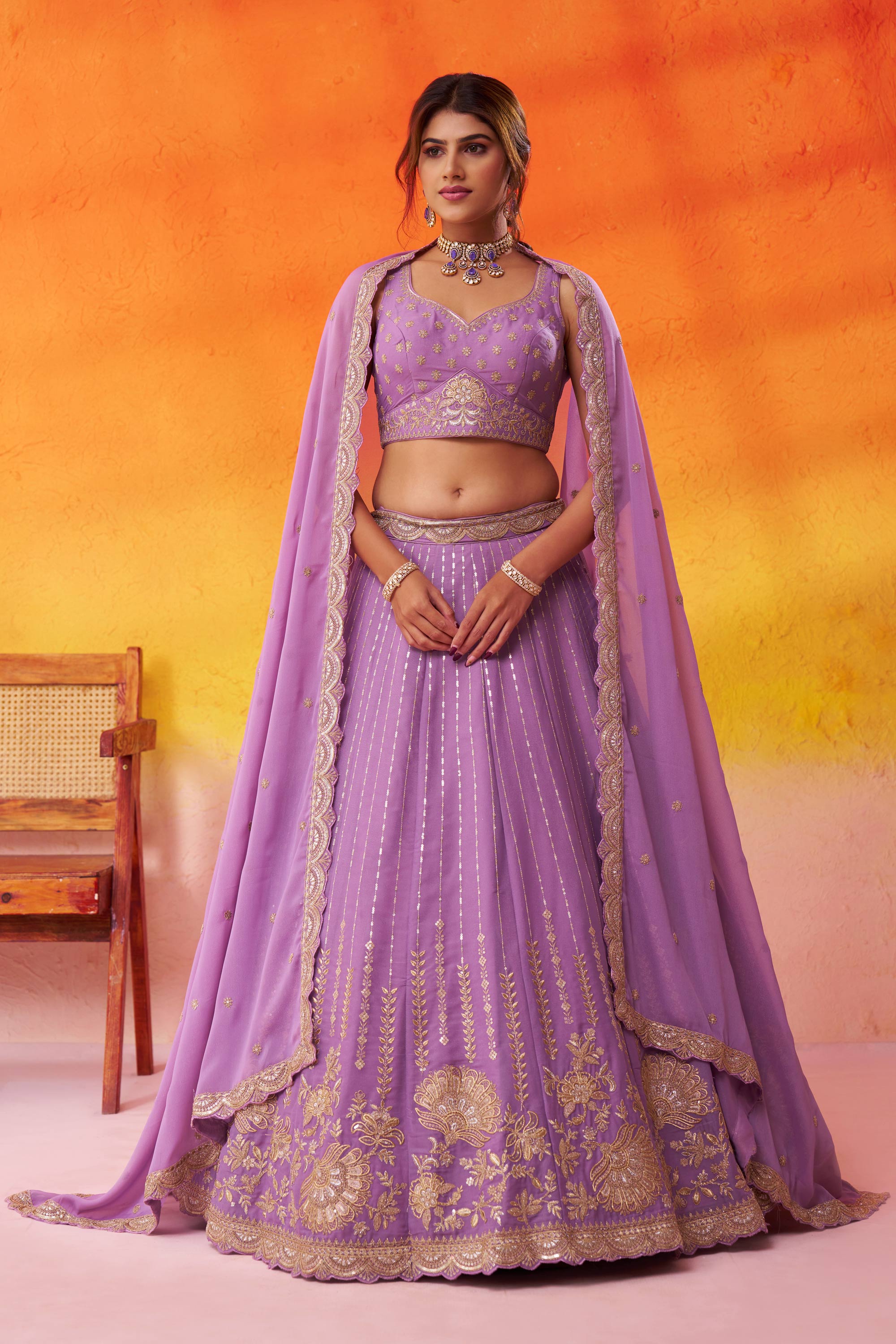 Lavender Wedding Wear Tissue Silk Embroidered Lehenga Choli