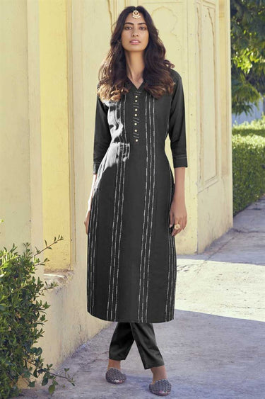 Lavish Art Silk Fabric Casual Wear Grey Color Embroidered Work Kurti With Bottom