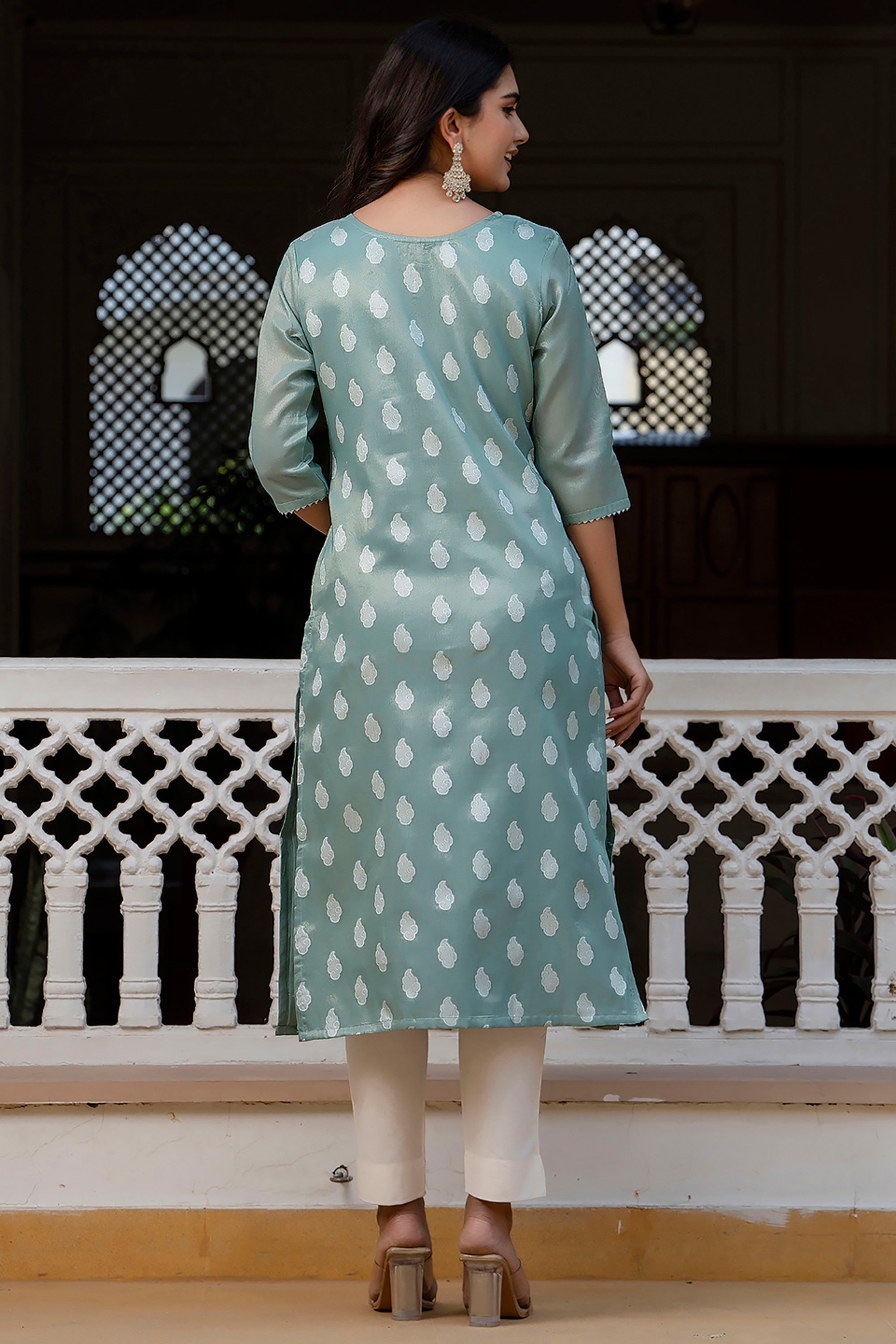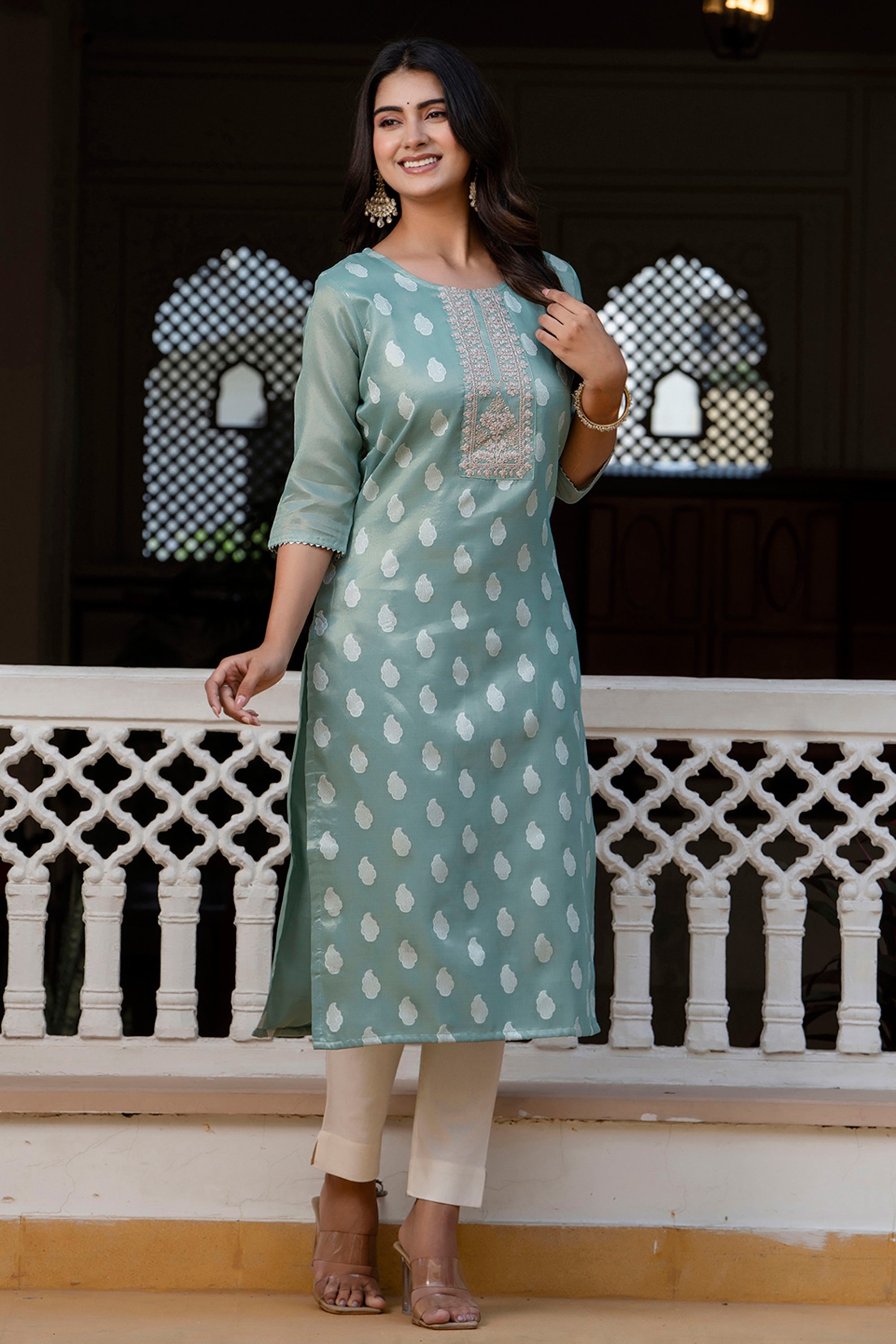 Light Cyan Color Art Silk Fabric Readymade Long Kurti