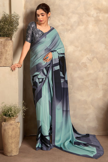 Light Cyan Color Glorious Printed Satin Fabric Saree In Casual Wear
