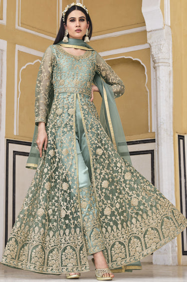 Light Cyan Color Net Fabric Alluring Party Style Anarkali Salwar Kameez