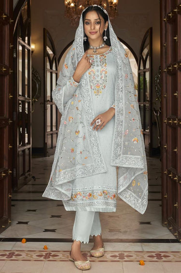 Light Cyan Color Viscose Fabric Embroidered Stunning Salwar Suit