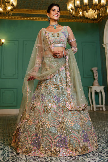 Lime Green Heavy Embroidered Designs Wedding Wear Lehenga And Enigmatic Blouse
