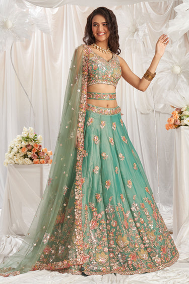 Elevate your festive wardrobe with our Sequins Embroidery Work Designer Lehenga Choli. This exquisite set comprises a semi-stitched lehenga highlighted by delicate sequins embellishments, an unstitched blouse ready for custom tailoring, and an elegant dupatta. The lehenga is designed with a practical drawstring closure for ease of wear. Featuring three-quarter sleeves, the blouse adds a touch of grace and versatility to your outfit. Please be aware that slight color discrepancies may occur between the online images and the actual product due to different fabric dyes and lighting.