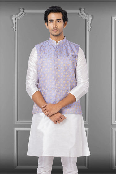 Linen Silk Lavender Sangeet Wear Pretty Readymade Jacket For Men