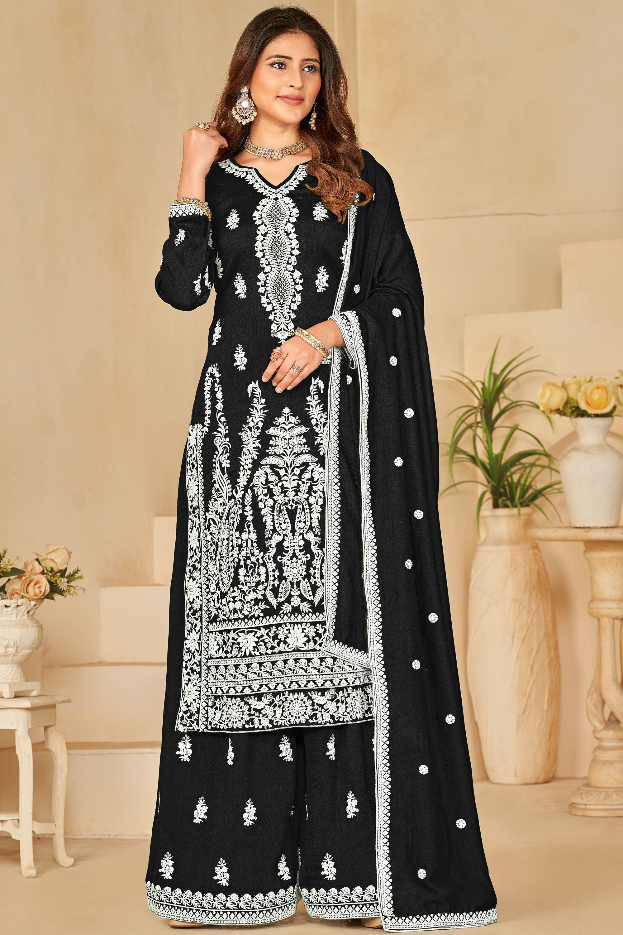 Lovely Art Silk Fabric Palazzo Salwar Suit In Black Color