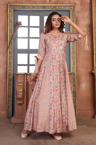 Lovely Pink Muslin Readymade Lonh Kurti- Sizes 36-46 - Digital Printed