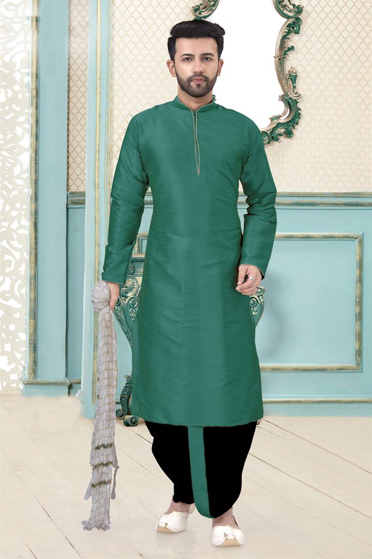 Lovely Teal Color Art Silk Fabric Function Wear Readymade Dhoti Style Kurta For Men