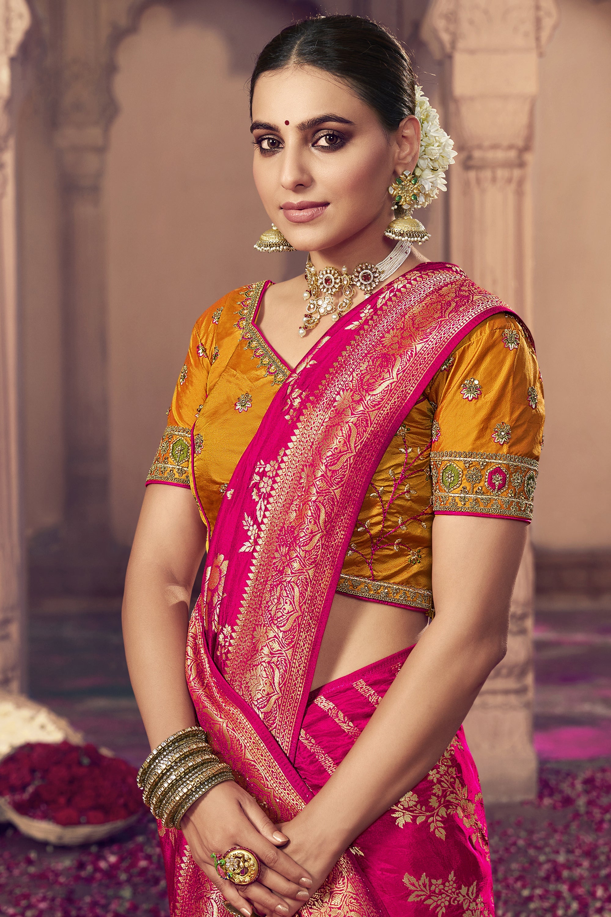 Magenta Color Art Silk Fabric Heavy Weaving Work Festive Wear Fancy Saree With Embroidered Blouse