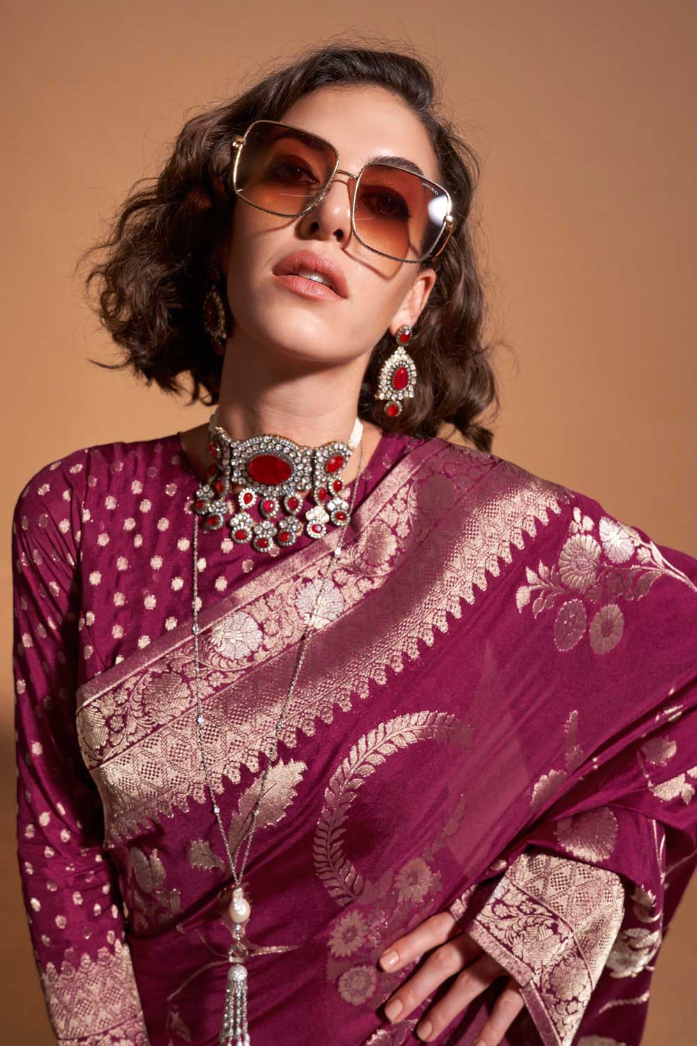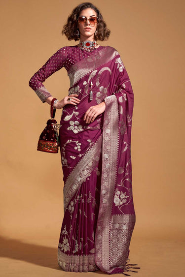 Magenta Color Weaving Work Brilliant Georgette Saree