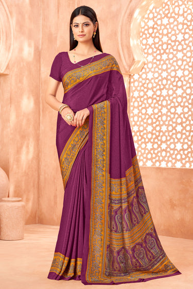 Magenta Premium Crepe Silk Showroom Uniform Saree