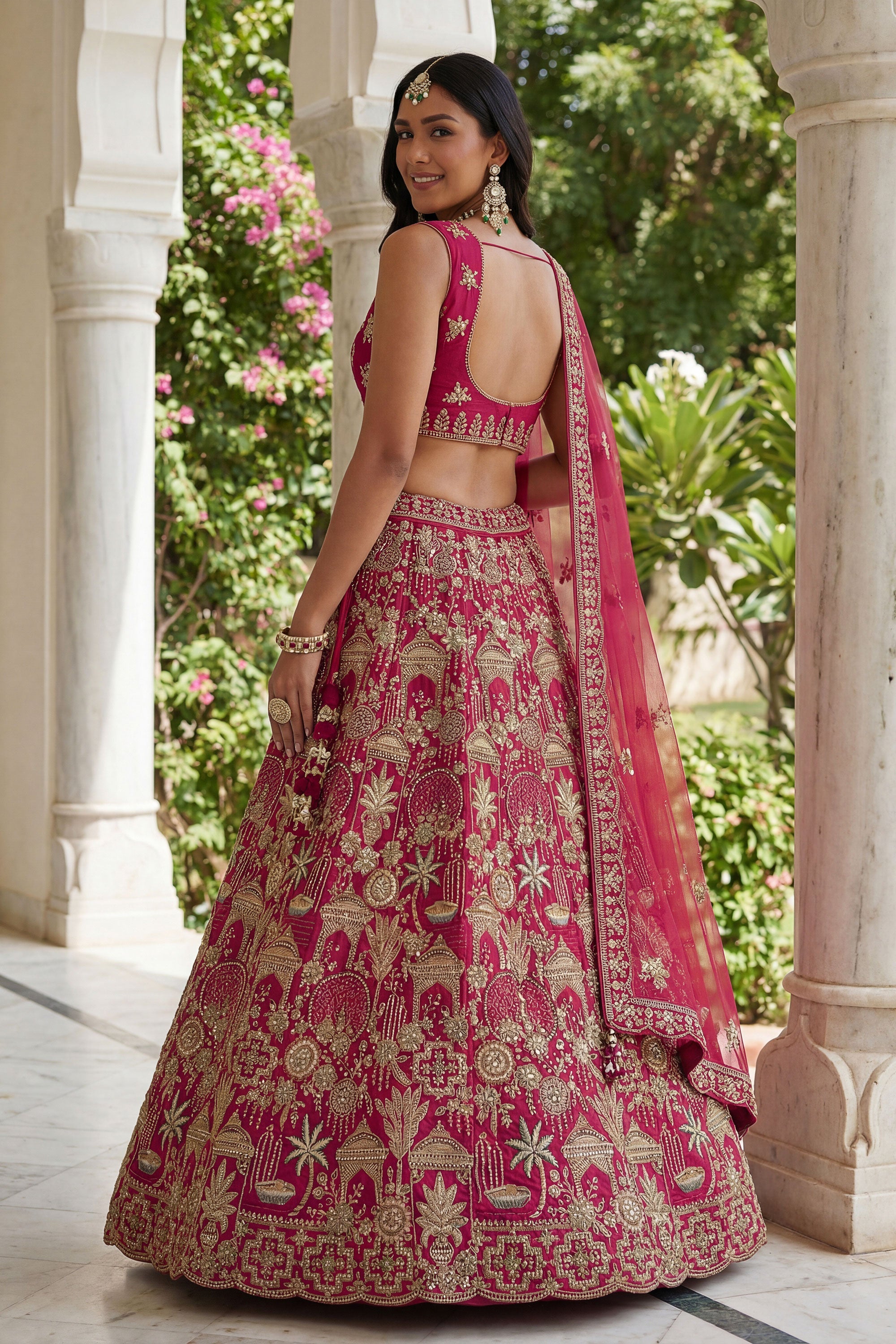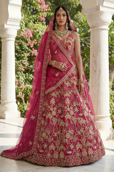 Magenta Silk Heavy Embroidered Bridal Lehenga Choli