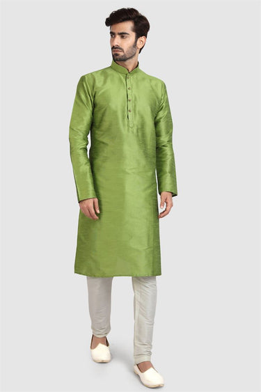 Majestic Green Color Art Silk Fabric Readymade Kurta Pyjama For Men