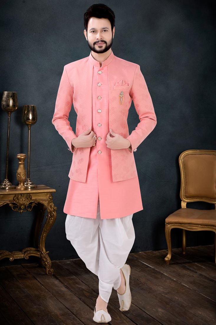 Majestic Pink Color Silk Fabric Dhoti Kurta Jacket Set