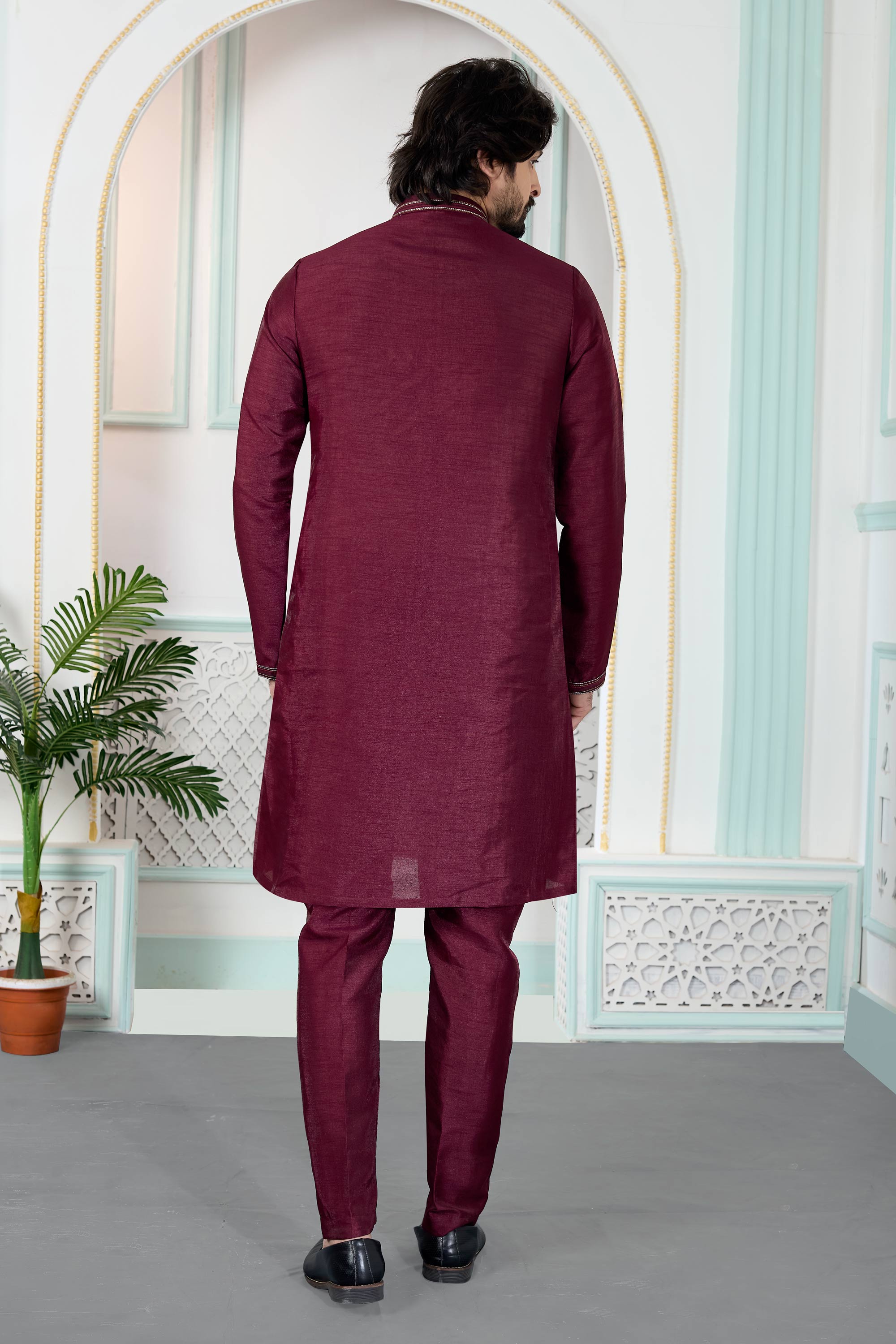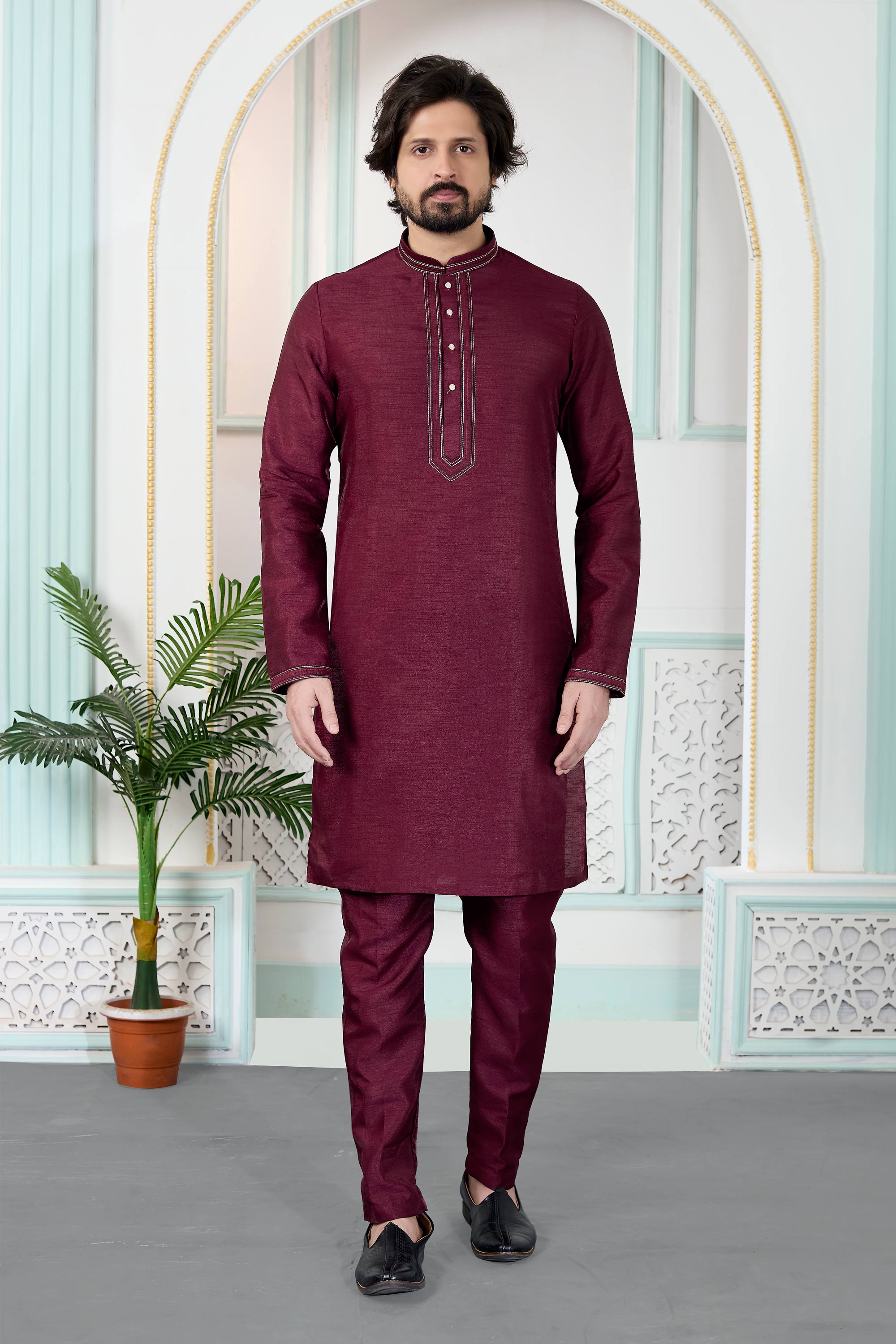 Maroon Art Silk Fabric Function Wear Readymade Kurta Pyjama For Men