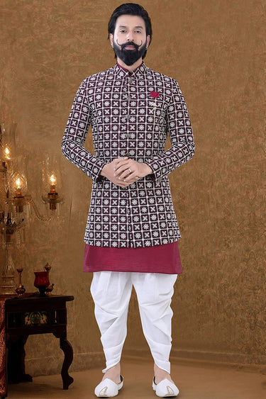 Maroon Color Cotton Fabric Sangeet Wear Miraculous Kurta Pyjama