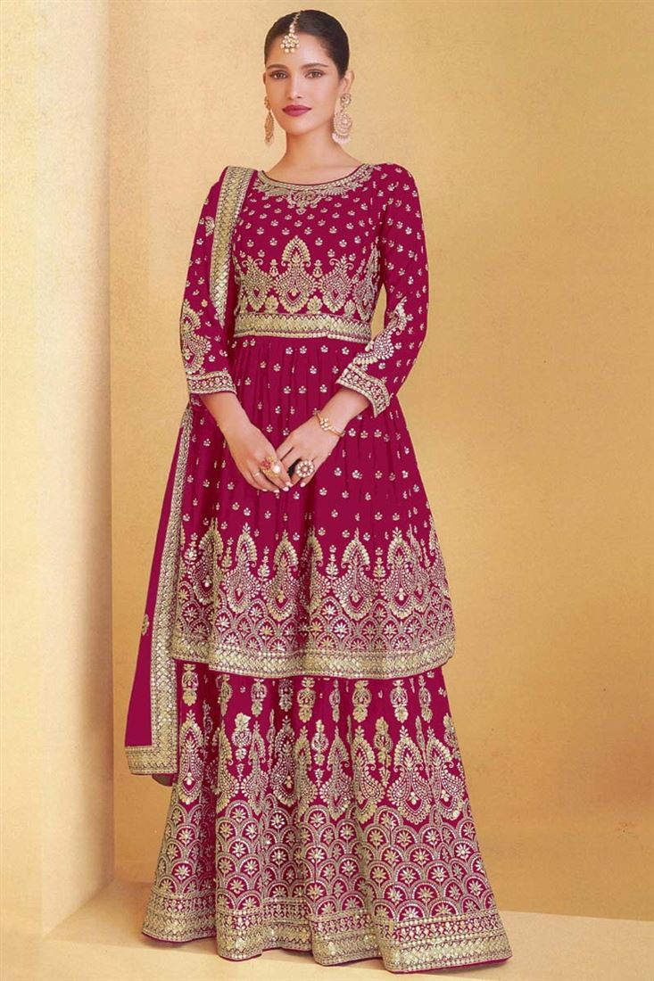 Maroon Color Georgette Fabric Party Wear Phenomenal Palazzo Suit Featuring Vartika Singh With Embroidered Work