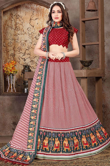 Maroon Color Satin Fabric Function Wear Gorgeous Printed Lehenga