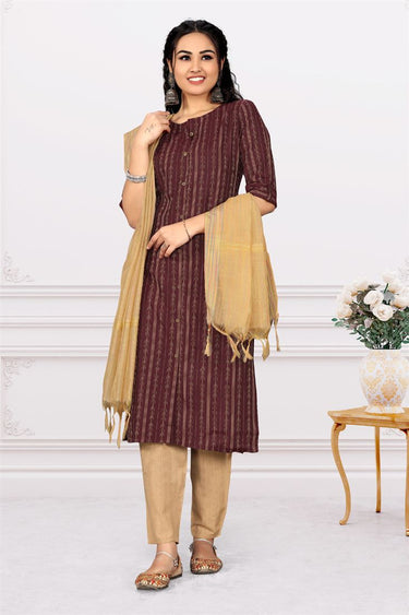 Maroon Color Sober Printed Cotton Kurti Bottom With Dupatta