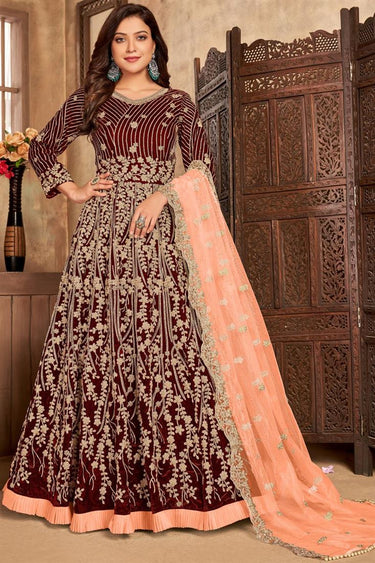Maroon Color Velvet Fabric Function Wear Embroidered Attractive Anarkali Suit