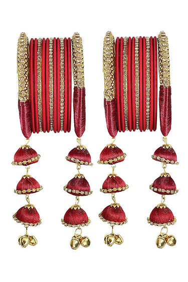 Maroon Handmade Silk Thread Designer Bangles With Latkan For Function