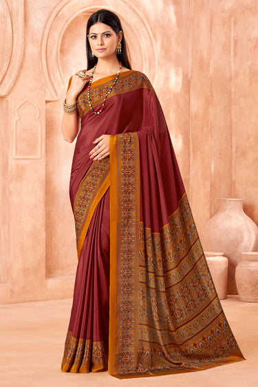 Maroon Premium Crepe Silk Nurse Uniform Saree