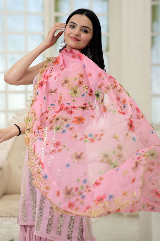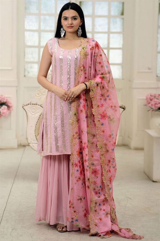 Marvellous Georgette Readymade Sharara Suit In Pink Color