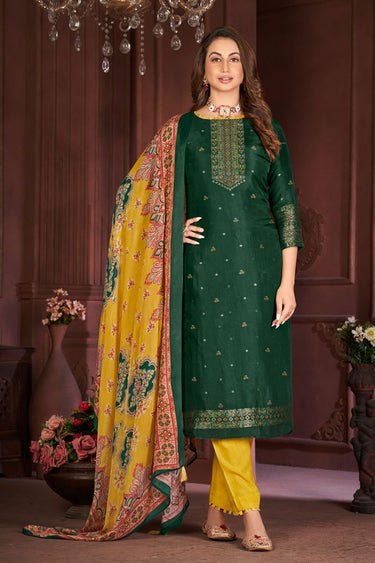 Marvellous Jacquard Fabric Festive Salwar Suit In Dark Green Color