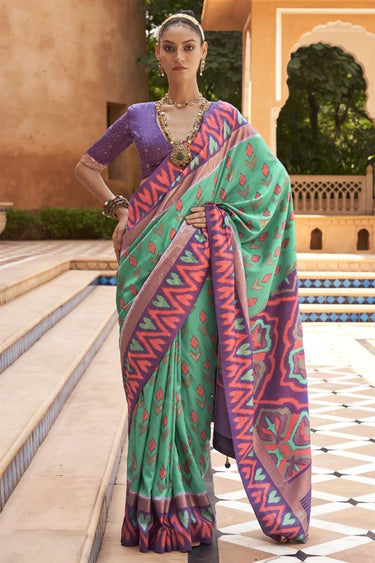 Marvellous Printed Work On Art Silk Fabric Patola Saree In Sea Green Color
