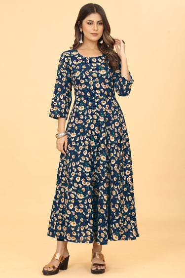 Marvelous Georgette Fabric Digital Printed Kurti In Navy Blue Color