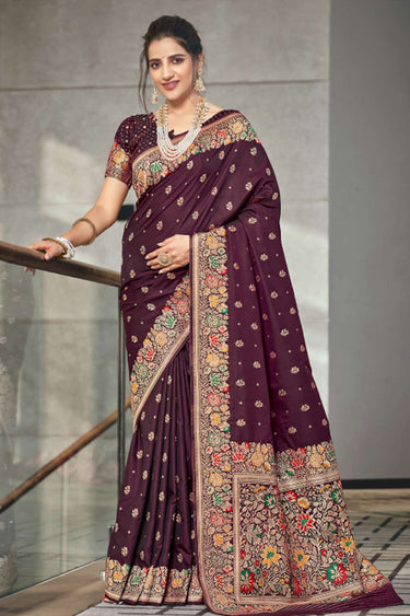 Marvelous Silk Fabric Weaving Designs Saree In Brown Color