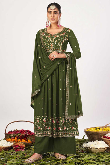 Mehendi Green Color Function Wear Winsome Georgette Pakistani Replica Suit