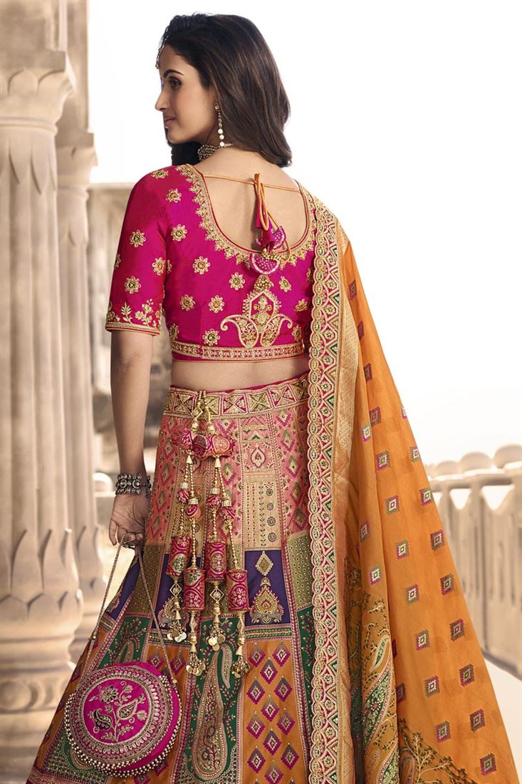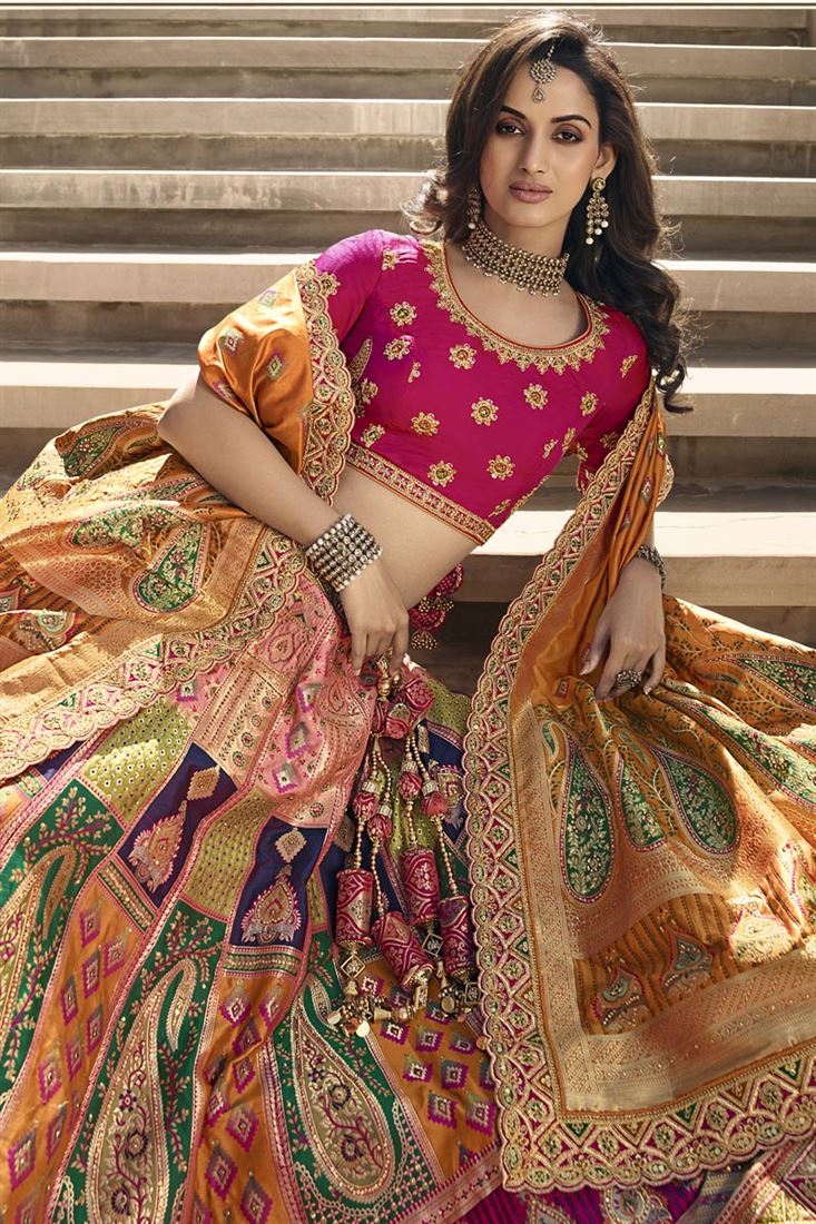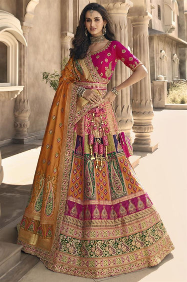 Multi Color Amazing Banarasi Silk Fabric Bridal Lehenga
