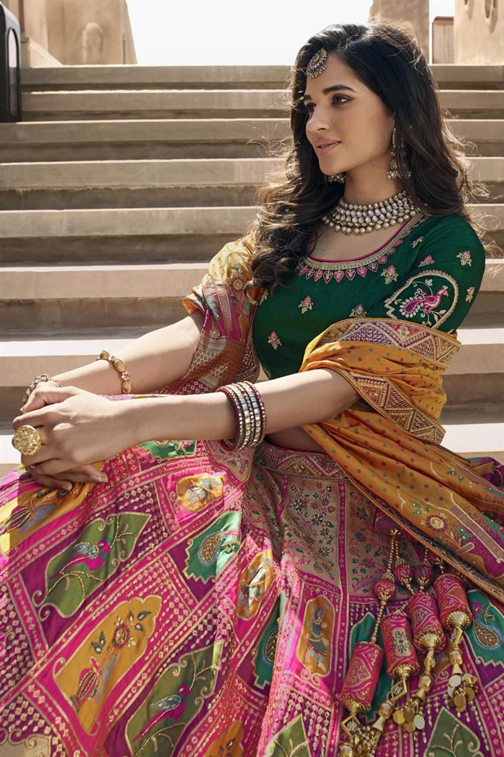 Multi Color Banarasi Silk Engaging Bridal Lehenga