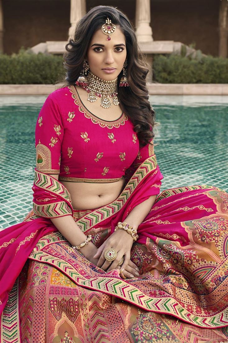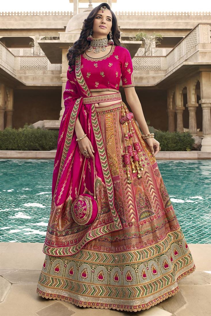 Multi Color Banarasi Silk Fabric Coveted Bridal Lehenga