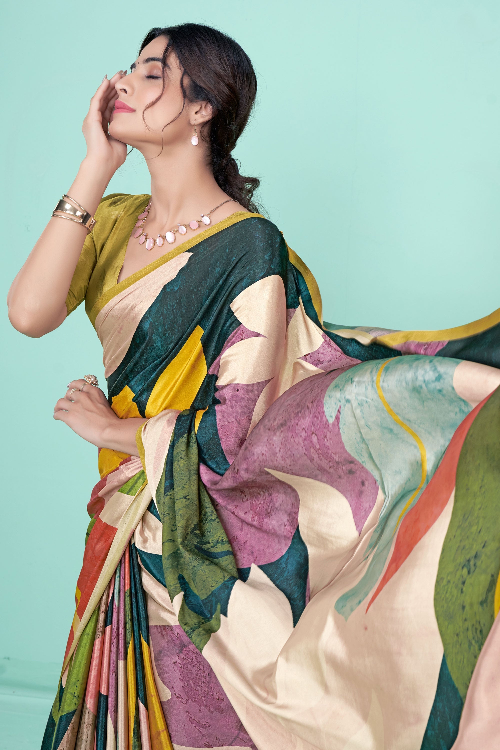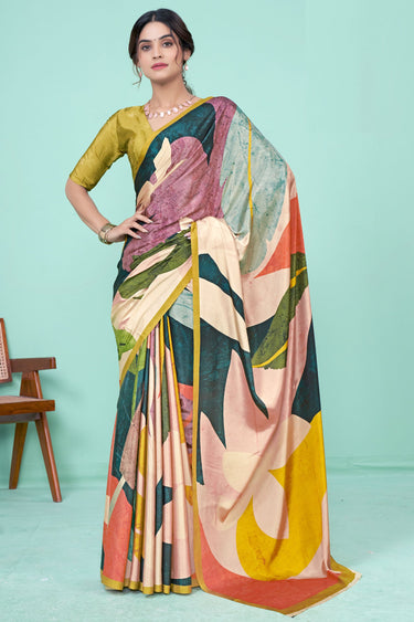 Multi Color Printed Work Crepe Fabric Glamorous Casual Saree