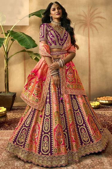 Say hello to grandeur with our Silk Fabric Multi Color Wedding Wear Lehenga Choli, a 3-piece marvel in silk! This outfit is carefully adorned with delicate embroidery work for that touch of timeless elegance. Available in rich hues, it'll make a bold yet beautiful statement at any wedding function. A fitting blend of style and comfort, it's made just for your special day!