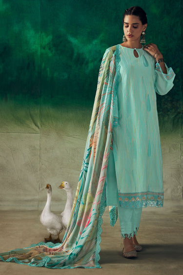 Muslin Fabric Cyan Color Function Wear Winsome Salwar Suit