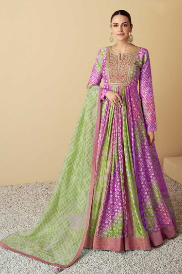 Muslin Fabric Glamorous Anarkali Style Gown With Dupatta